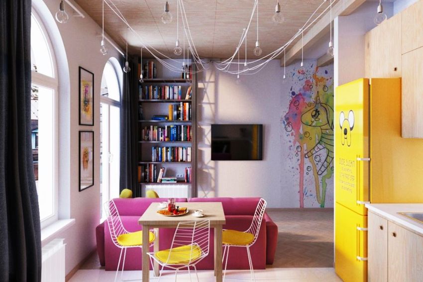 نصائح مفيدة! في مزيج من اللون الأصفر مع الأبيض أو الرمادي أو الأحمر أو الألوان الأخرى ، يجب اتباع قاعدة مهمة - لضمان مزيج سلس ، باستثناء الهيمنة الواضحة لأحد الألوان.
