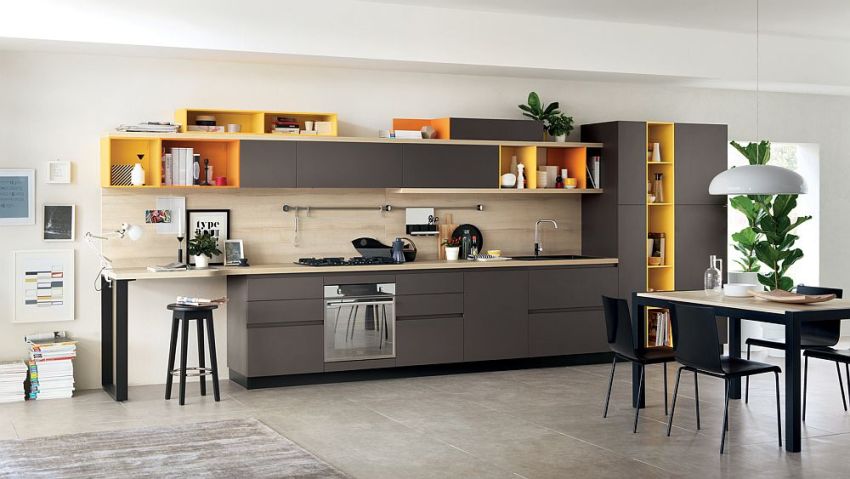 تُظهر صور المطابخ ذات اللون الرمادي والأصفر مزيجًا أنيقًا يمكن أن يمنح حتى أصغر مطبخ شكلاً فريدًا من نوعه ، مرتبطًا بالتصميم الداخلي الكلاسيكي لحانة صغيرة إيطالية مريحة. الميزة الرئيسية في هذه المجموعة هي البساطة في اختيار المفروشات الضرورية وإكسسوارات المطبخ.