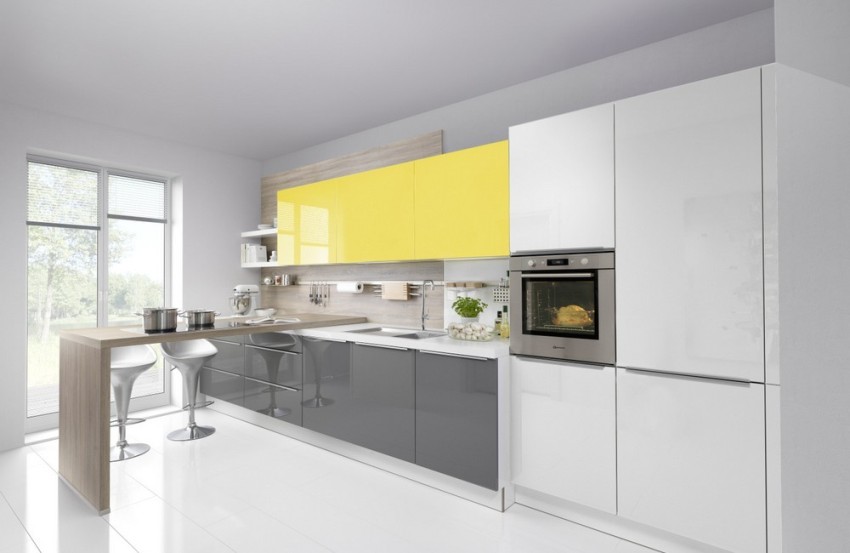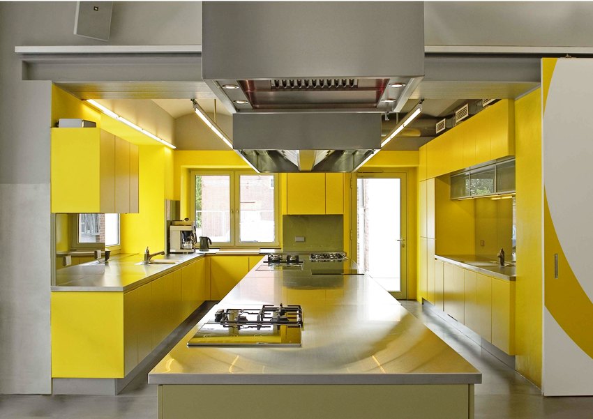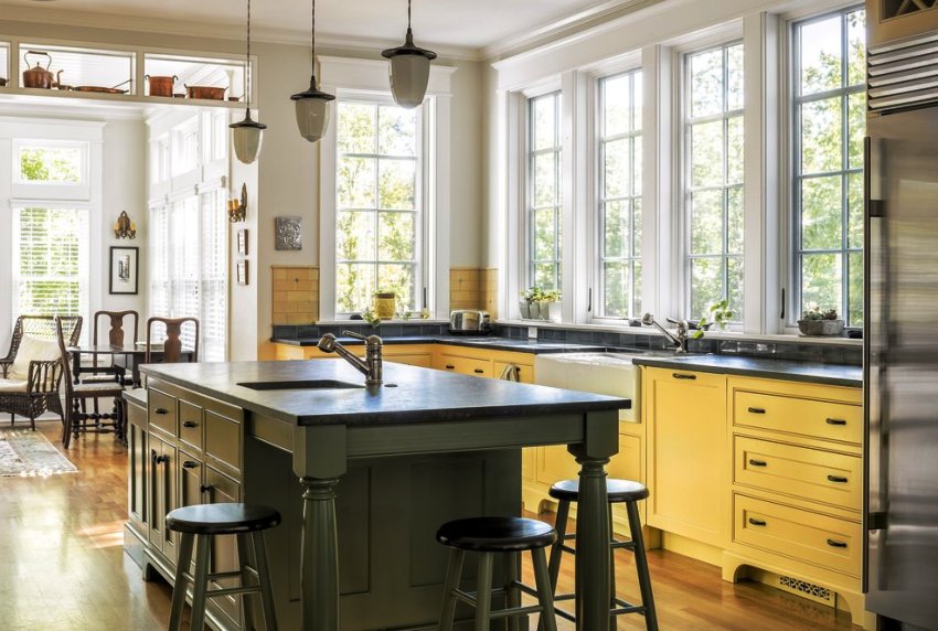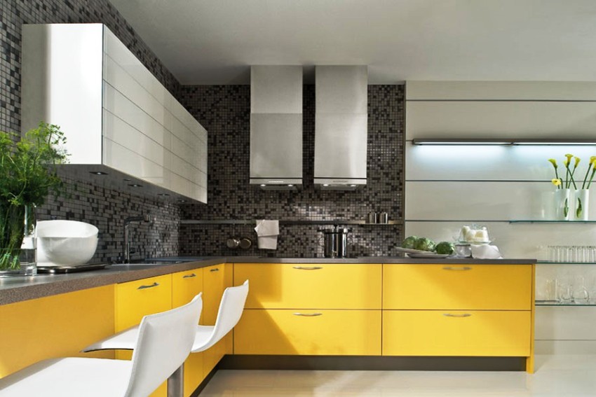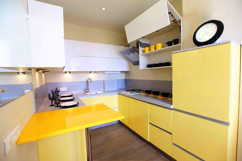 الحذر في اختيار تصميم المطبخ الأصفر: صور لأمثلة التصميم