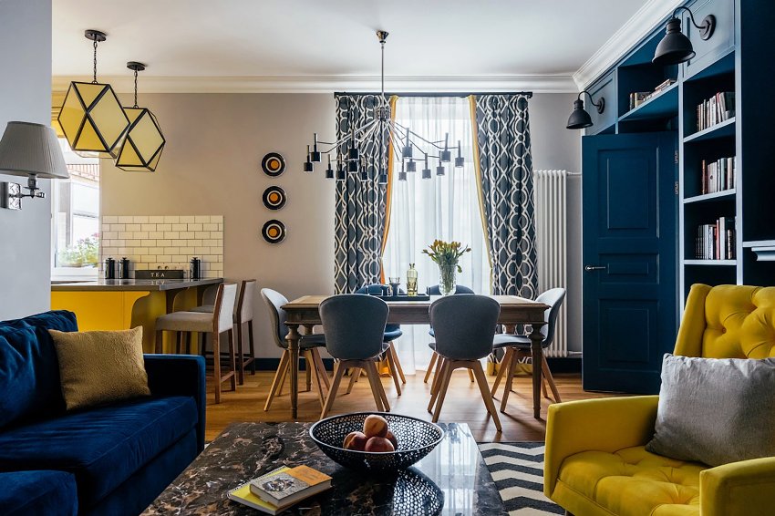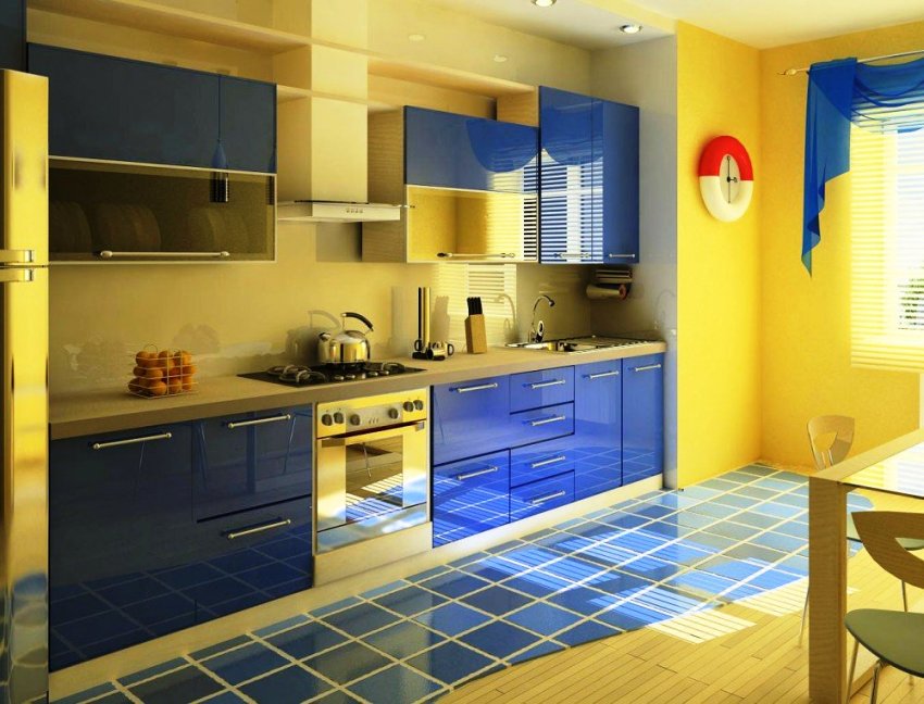 - 3.4 المطبخ الأزرق والأصفر في الداخل: صور لأفكار مشرقة تتحقق