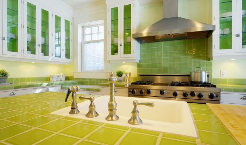 المطابخ ذات اللون الأصفر والأخضر: صور أمثلة التصميم