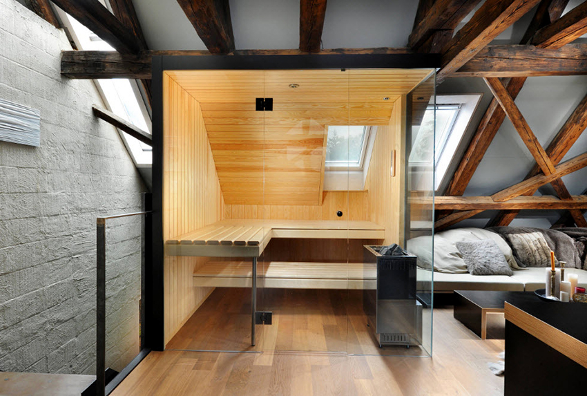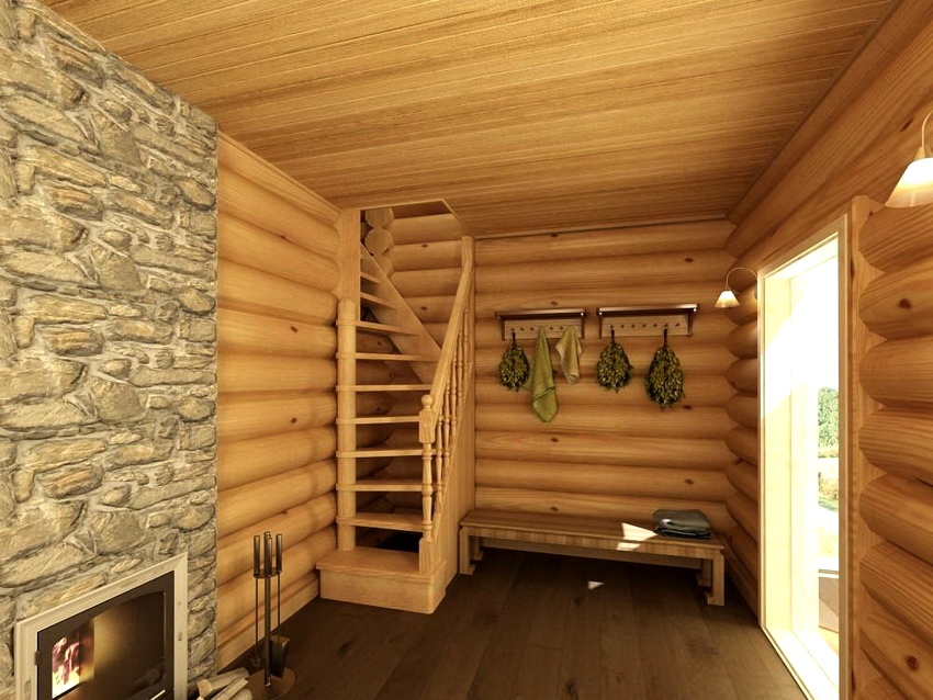 الهيكل الخشبي الرئيسي لغرفة البخار هو المظلة. إنها مصنوعة من الخشب ، وإذا قمت بتطبيق خيالك الإبداعي ، فإن الستائر هي التي ستخلق تصميمًا داخليًا فريدًا ومميزًا في هذه الغرفة. في أغلب الأحيان ، يتم إجراء مثل هذه التصميمات في شكل خطوات مغلقة. لكن يمكنك ترتيبها كأرفف معلقة أفقيًا ، أيبخطوات مفتوحة. لا يبدو هذا الترتيب مثيرًا للاهتمام فحسب ، بل يوسع المساحة بصريًا ، ويزيد من منطقة الهواء ، وهو أمر مهم للحالة المادية (نظرًا لدرجة الحرارة في هذه الغرفة).