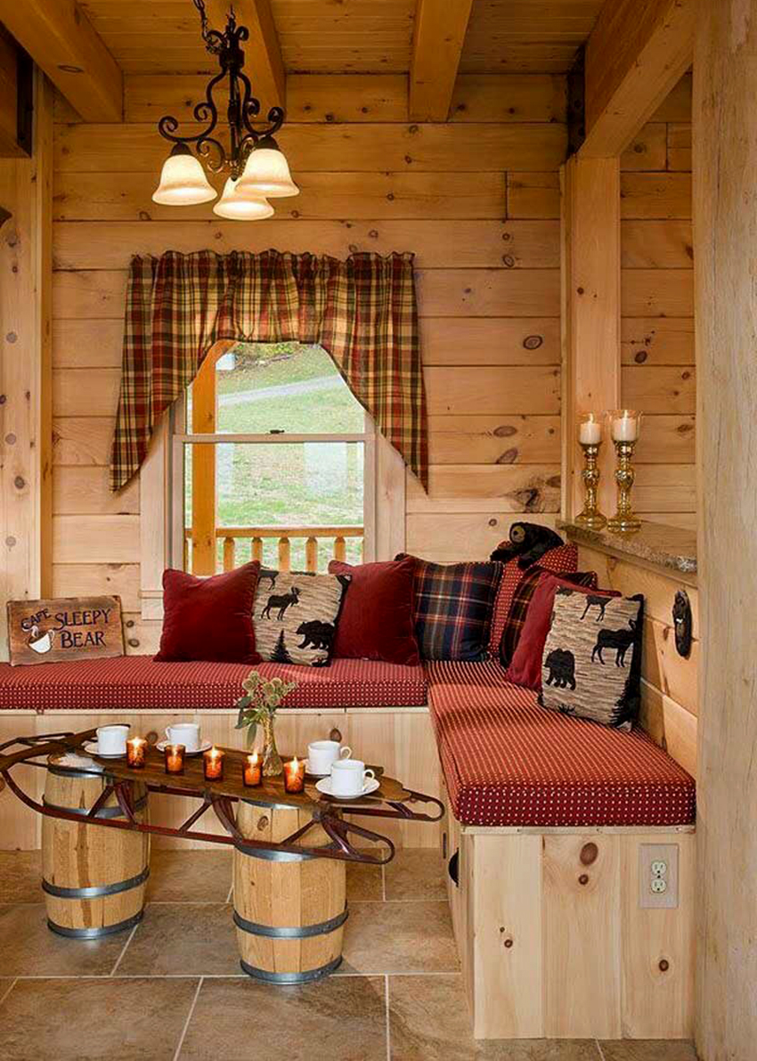 إذا كانت غرفة الاستراحة تتسع لطاولة ومقاعد فقط ، فلا تقلق. عدة أكياس من الكتان ، مزينة بعناصر من مواد طبيعية (البازلاء ، الصنوبر أو الكتان ، بذور عباد الشمس) ، المليئة بالأعشاب العطرية لشرب الشاي ، المعلقة بمهارة على الجدران ، ستضفي على الغرفة طابعًا فريدًا.
