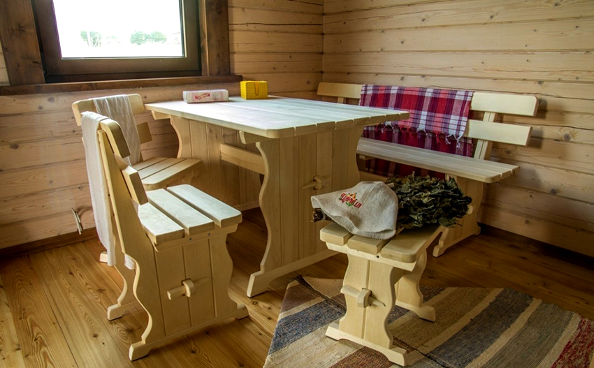 إذا لم تكن هناك فرصة أو مصدر إلهام للتجميع الذاتي ، فيمكن شراء أثاث الحمامات والساونا الجاهزة. تمتلئ شبكات التداول بمجموعة متنوعة من الموديلات ، بدءًا من الطاولات والمقاعد المحبوكة بشكل فظ إلى الخزائن المصنوعة من خشب البلوط المنحوت والكراسي الهزازة المصممة. يعتمد الاختيار في المقام الأول على الذوق وتوافر الأموال.