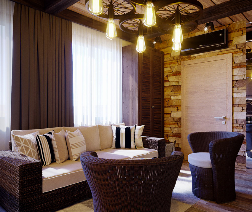 يجدر تزيين السقف في غرفة الاستراحة فقط إذا كان مرتفعًا. تجعل الحزم والشبكات والمصابيح المدمجة في مناطق مصممة خصيصًا الجزء العلوي من الغرفة معبرًا ، ولكن عندما تكون منخفضة ، فإنها "تسحق" الغرفة. يتم إنشاء الراحة من خلال نشر الضوء الناعم.