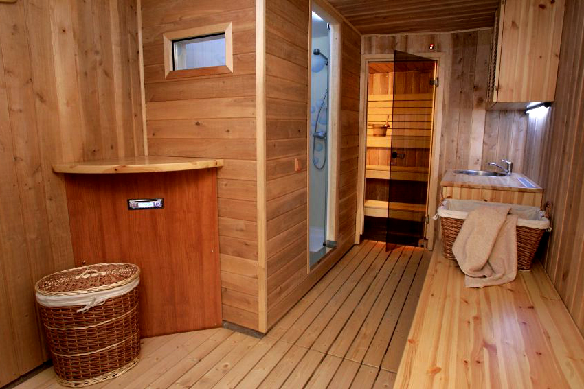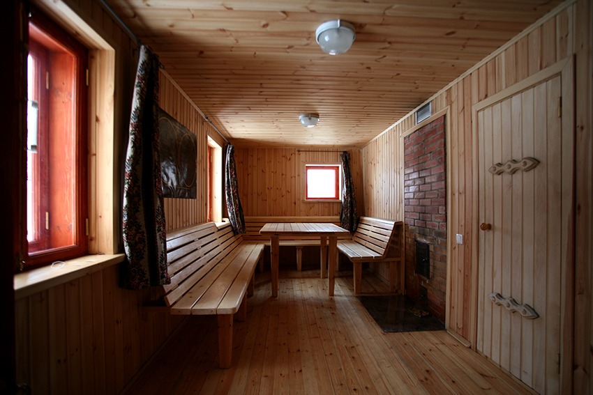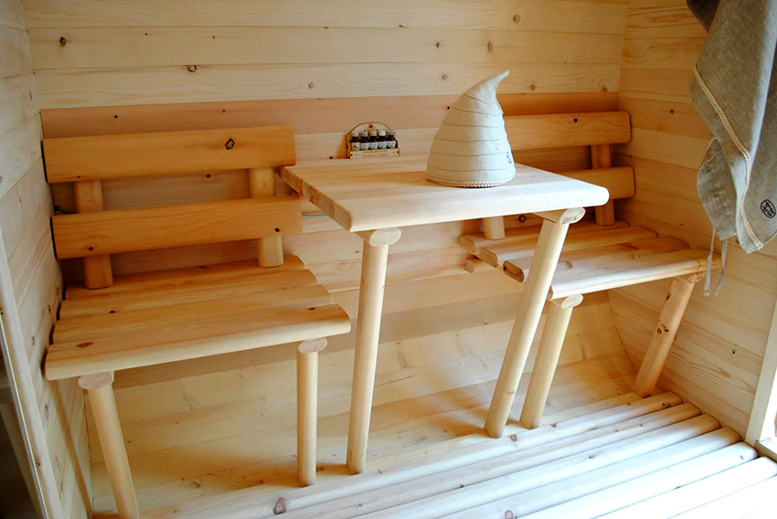 نصيحة مفيدة! إذا كان أثاث الحمام مصنوعًا من خشب الصنوبر ، فمن الضروري تسخين غرفة البخار 3-4 مرات أثناء غياب الزوار ، وبذلك تصل درجة الحرارة إلى الحد الأقصى. سيساعد هذا في إزالة الراتنج من الخشب.