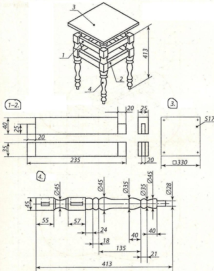 تبين أن البناء غير خشن ومستقر ومتعدد الاستخدامات. يمكنك وضع مقاعد بالقرب منه ، كراسي جلوسوالأرائك والكراسي الصغيرة. يمكن أيضًا صنع الكراسي بنفسك. يجب أن تكون الفراغات التالية متوفرة: