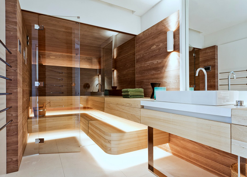 أثاث خشبي للحمامات والساونا في قلب أي طراز داخلي