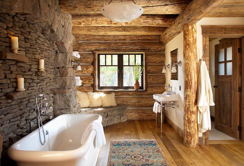 يوصى باستخدام مواد طبيعية لصناعة الأثاث. عند اختيار المصابيح والأطباق والنعال والمناديل والأشياء الأخرى المستخدمة في الحمام ، يجب أن تسعى جاهدة لتحقيق الطبيعة والود البيئي. هذا يجلب الانسجام وله تأثير مفيد على الإدراك النفسي للبيئة وعلى الحالة المزاجية.