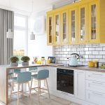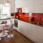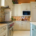 يبلغ ارتفاع خزائن المطبخ فوق سطح العمل 50 سم ، بناءً على متوسط أبعاد أجهزة المطبخ. على سبيل المثال ، سيحمي هذا الترتيب الخزانة العلوية من التأثيرات الضارة للبخار الناتج عن طباخ متعدد أو غلاية كهربائية.
