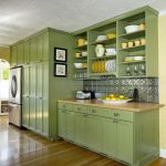 تعتبر الأرفف المفتوحة في المطبخ مريحة للغاية ، حيث لا تحتاج إلى فتح الباب مع الاستمرار للوصول إلى أي عنصر. يمكنك هنا تخزين حاويات بها توابل وأدوات مائدة على شكل ملاعق وملعقة مشقوقة وأكواب ومواد ديكور. العيب الرئيسي لهذه الأرفف هو أنها ليست فسيحة للغاية ، والعناصر الموجودة عليها تتطلب عناية مستمرة ودقيقة.