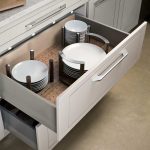 تتيح الآلية المريحة والمثالية ، التي تم تجهيز الأدراج بها ، إمكانية تحريكها للخارج والداخل بسلاسة ، حتى مع وجود أقصى حمولة من العناصر. تحتوي أنظمة الدرابزين على أجهزة خاصة بها خطافات مصممة لوضع أدوات المطبخ والمغارف والكاشطات وأدوات المطبخ الأخرى عليها. يتم وضعها ، مثل جهاز تخزين الأغطية البلاستيكية ، داخل الخزانات أو في الخارج - على جدار المطبخ.