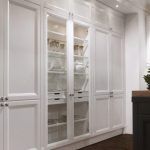 - بأبواب زجاجية (مصنوعة من الزجاج الشفاف أو المصنفر) ، وغالبًا ما تكون خزائن الحائط أو الألواح الجانبية أو الألواح الجانبية ؛