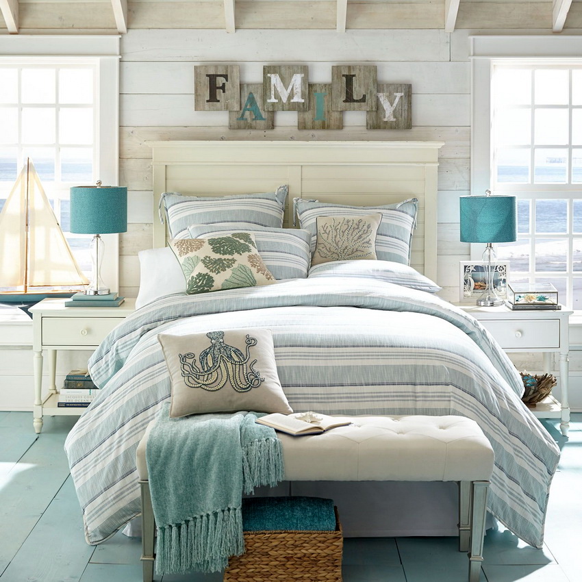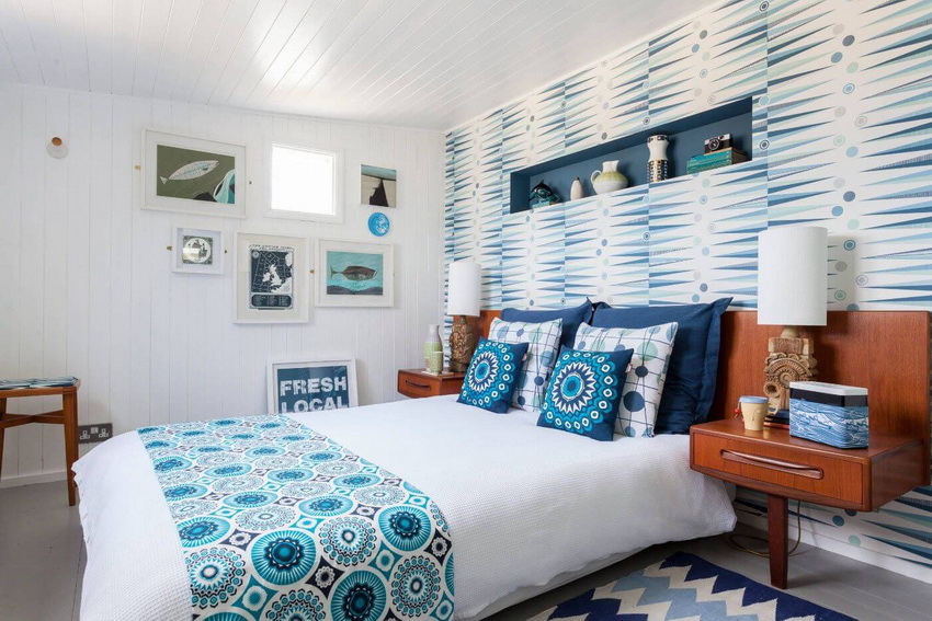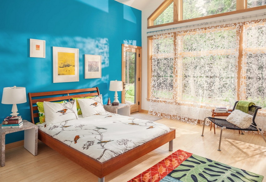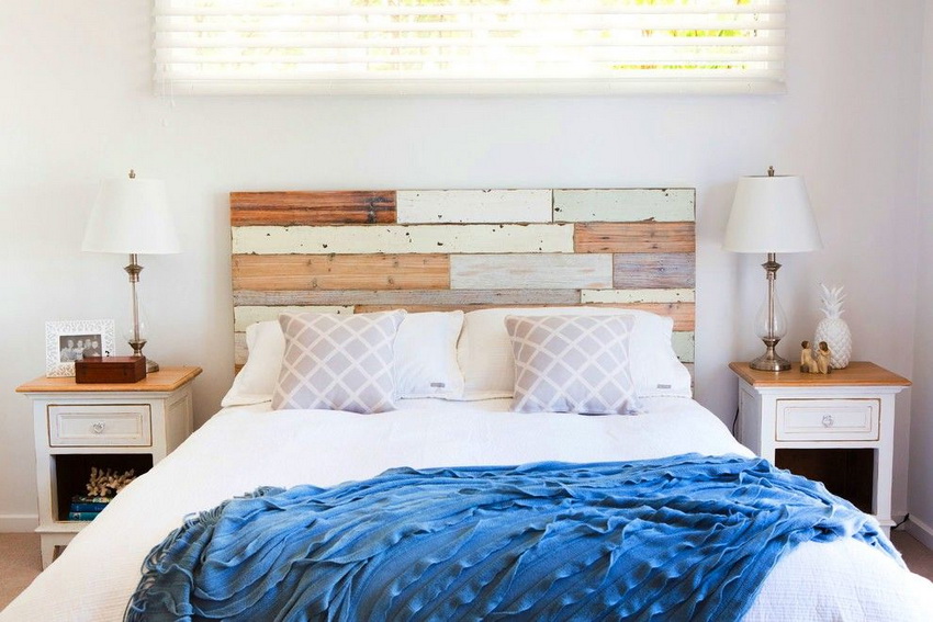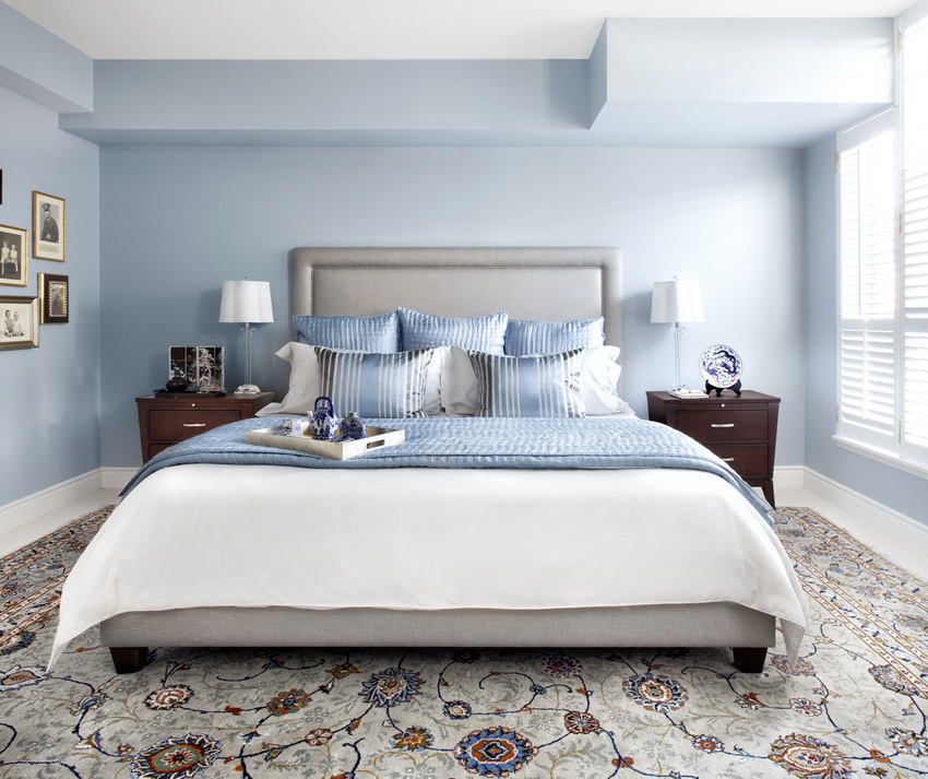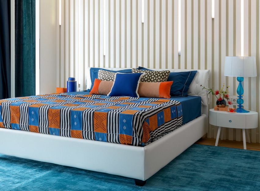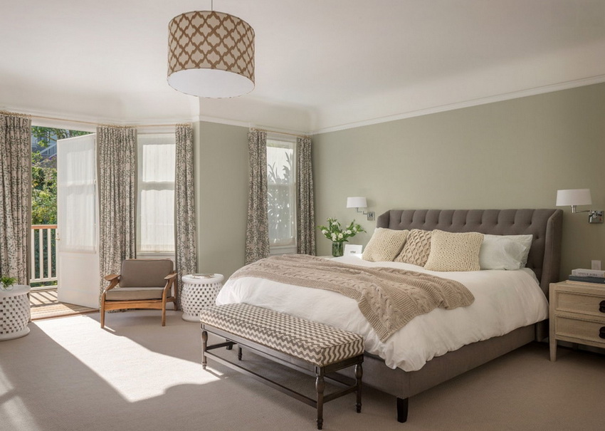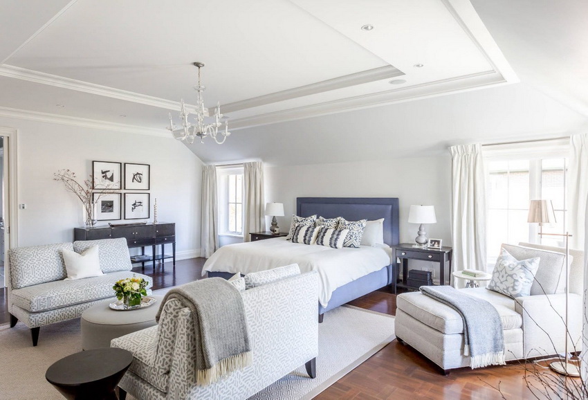 يمتزج اللون الأبيض تمامًا مع جميع درجات اللون الأزرق والأخضر والبيج ، مما يسمح لك بإنشاء تصميمات داخلية فاخرة لغرفة النوم