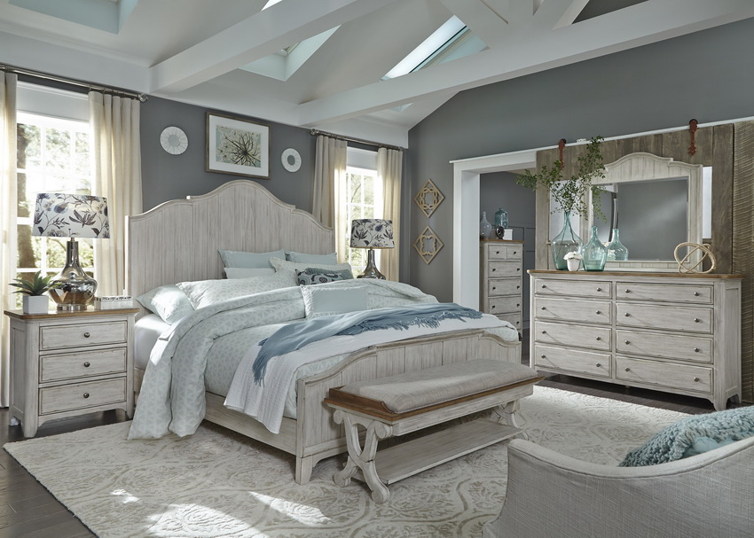 مجموعات غرفة النوم البيضاء الموضحة في الصورة مصنوعة من كل من الخشب الصلب والمواد الخشبية. يؤكد تنوع الأنماط والأشكال والأحجام والتكوينات على إمكانيات التصميم غير المحدودة عند إنشاء أثاث أبيض.
