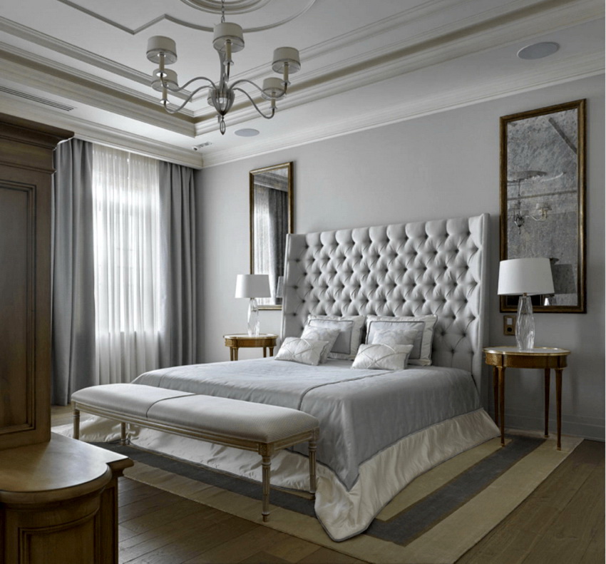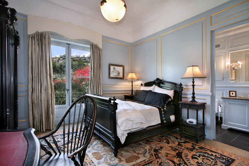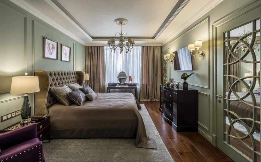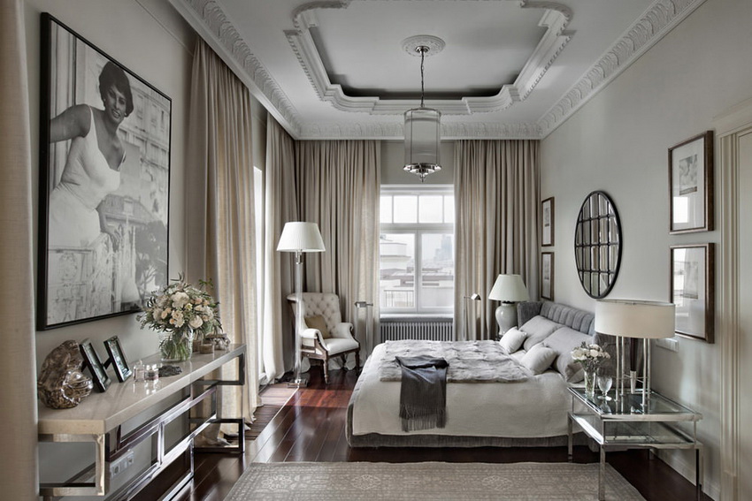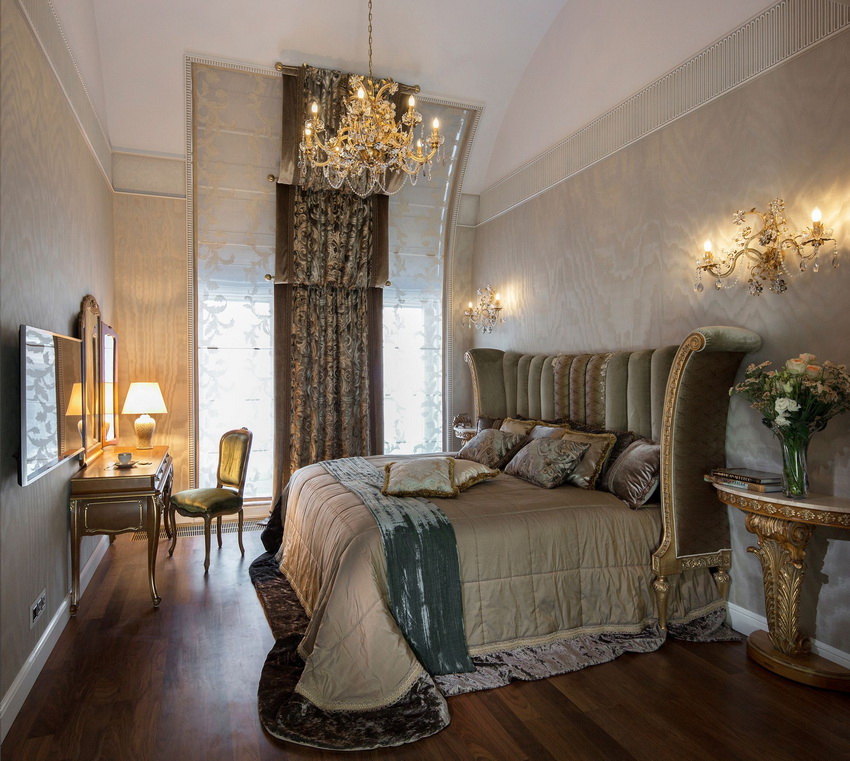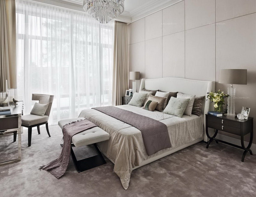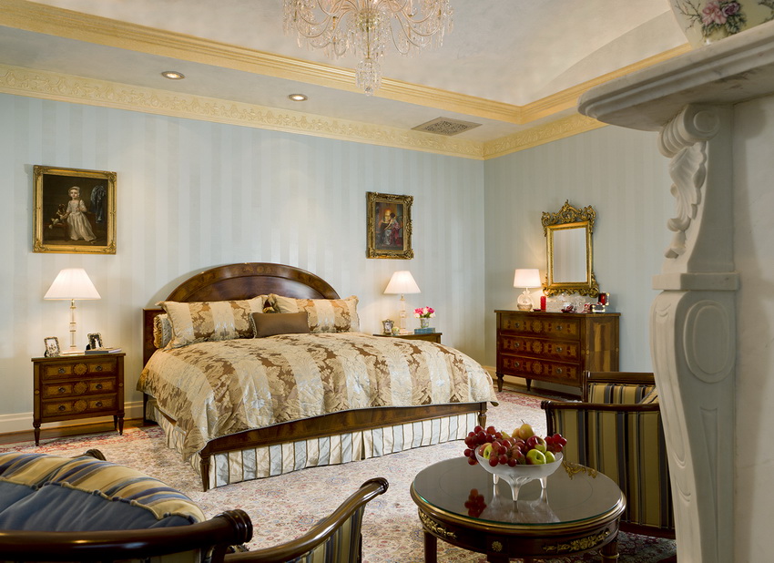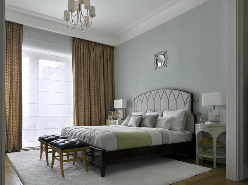 إذا بدت الغرفة غير شخصية للغاية ، يمكنك وضع سجادة صغيرة بنمط مرئي بوضوح بجوار السرير ، أو اختيار غطاء سرير بظل أكثر كثافة. يجب أن يتذكر أتباع الكلاسيكية الجديدة ، الذين يقترحون مجموعة غرفة نوم مصنوعة من أثاث ضخم بأرجل منحوتة وأنماط مزخرفة ، وستائر ثقيلة ، وأغطية المصابيح ، أن الغرفة التي من المفترض أن يتم وضع كل هذا فيها يجب أن يكون لها أسقف عالية وفتحات نوافذ كبيرة بما يكفي.