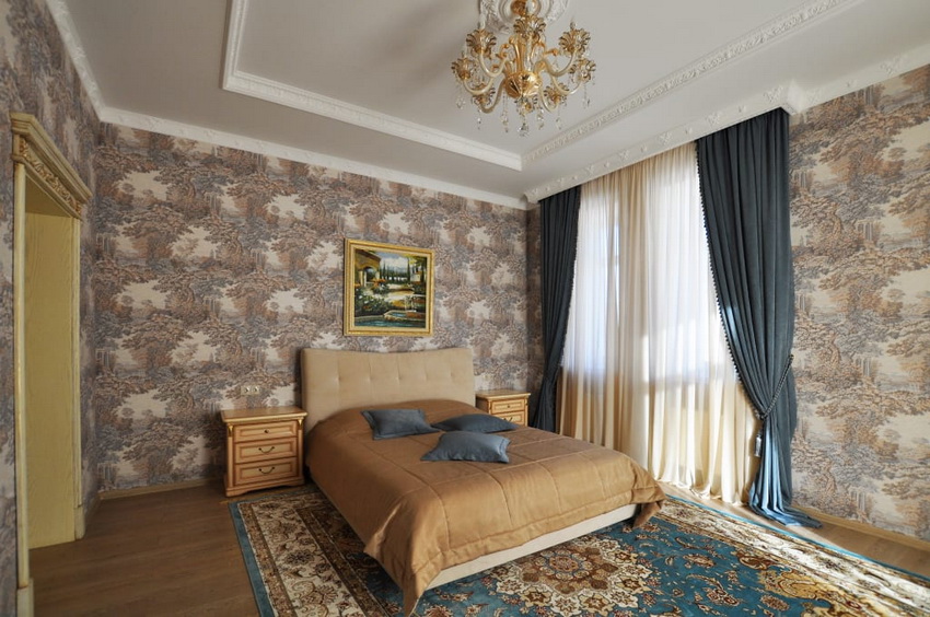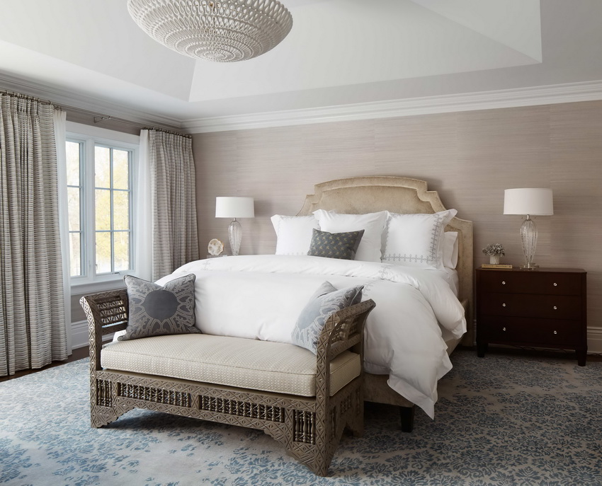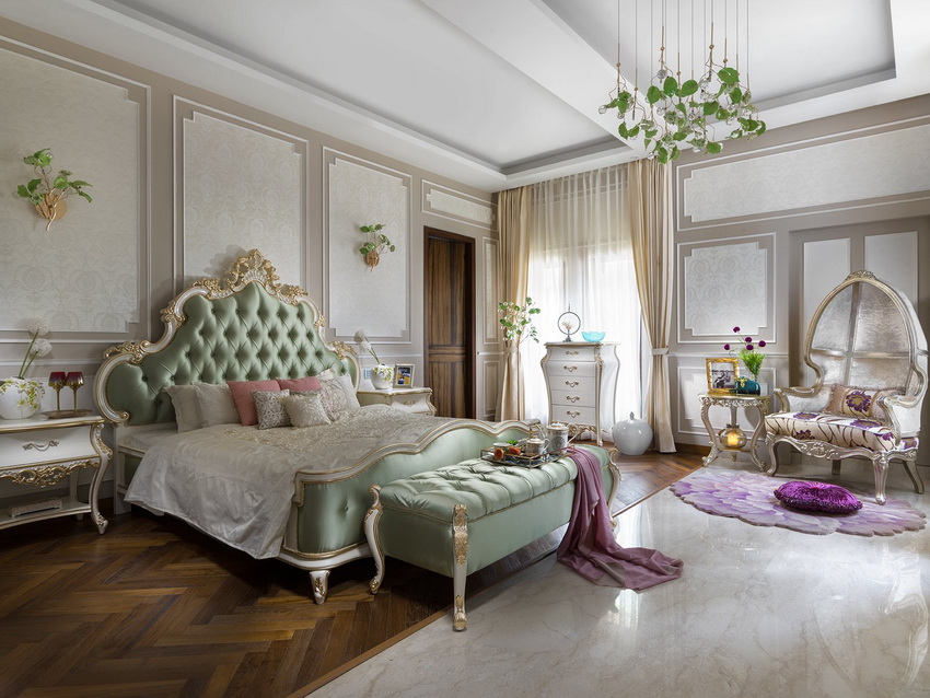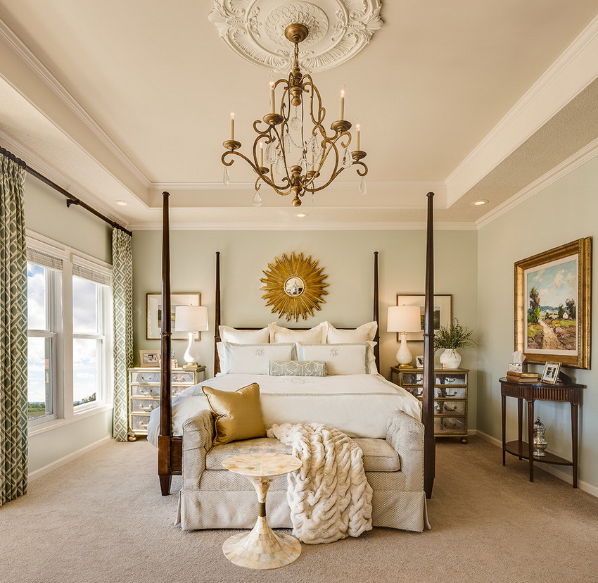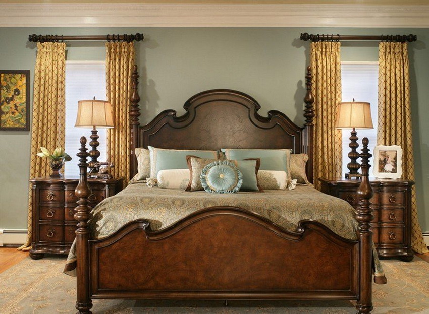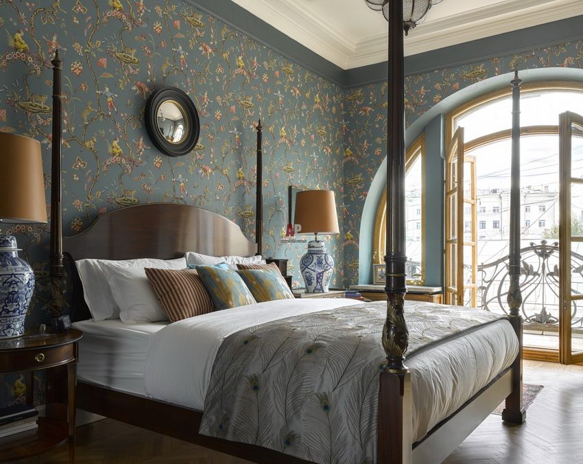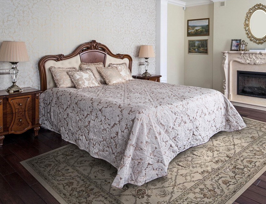 إذا بدت الغرفة غير شخصية للغاية ، يمكنك وضع سجادة صغيرة بنمط مرئي بوضوح بجوار السرير ، أو اختيار غطاء سرير بظل أكثر كثافة. يجب أن يتذكر أتباع الكلاسيكية الجديدة ، الذين يقترحون مجموعة غرفة نوم مصنوعة من أثاث ضخم بأرجل منحوتة وأنماط مزخرفة ، وستائر ثقيلة ، وأغطية المصابيح ، أن الغرفة التي من المفترض أن يتم وضع كل هذا فيها يجب أن يكون لها أسقف عالية وفتحات نوافذ كبيرة بما يكفي.