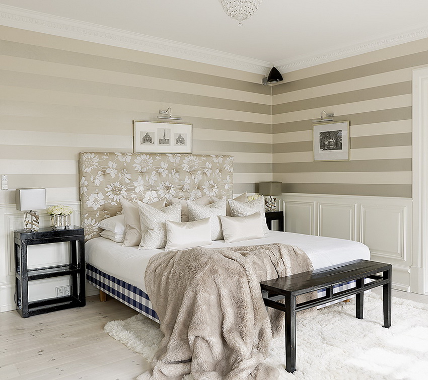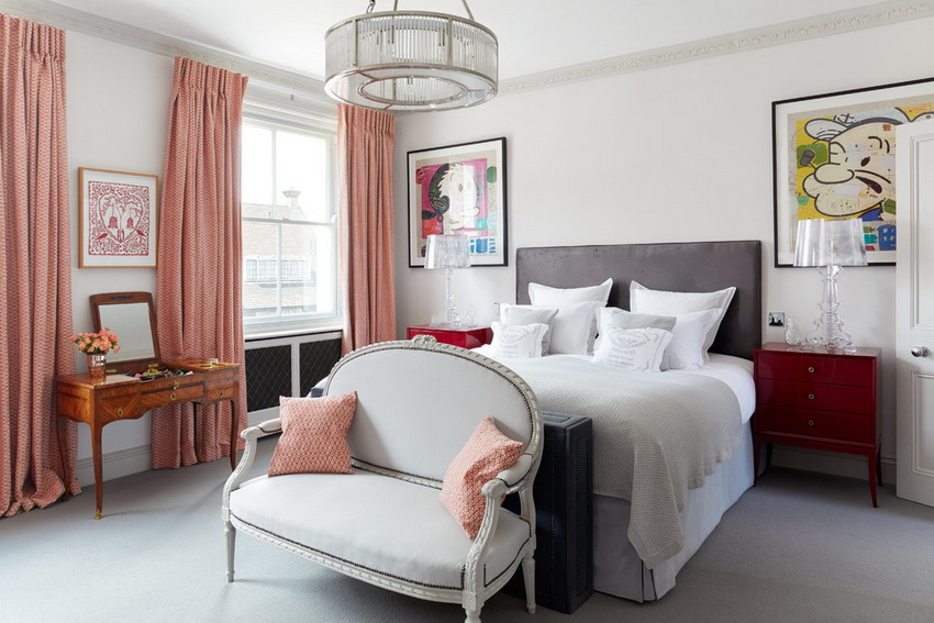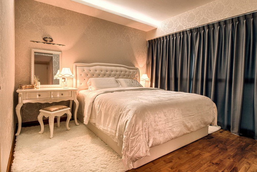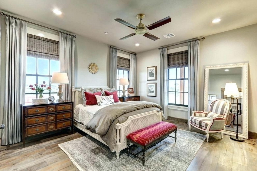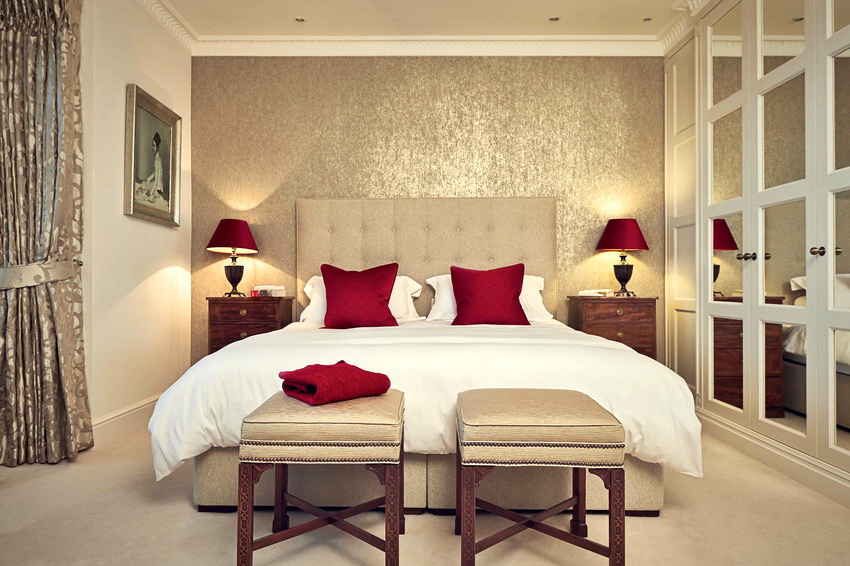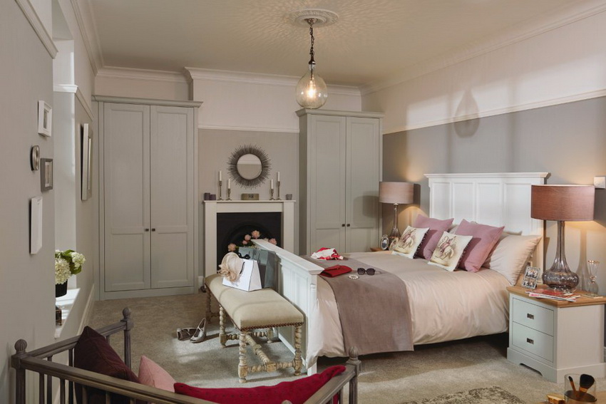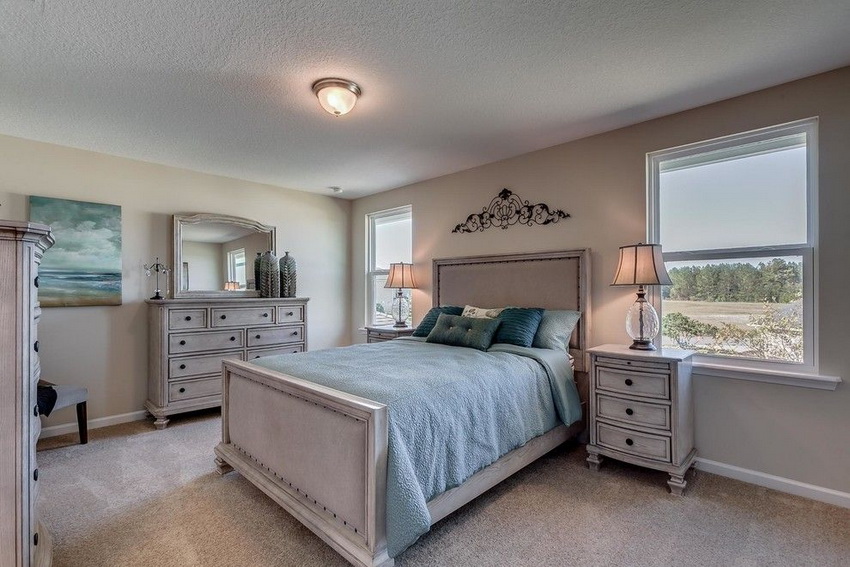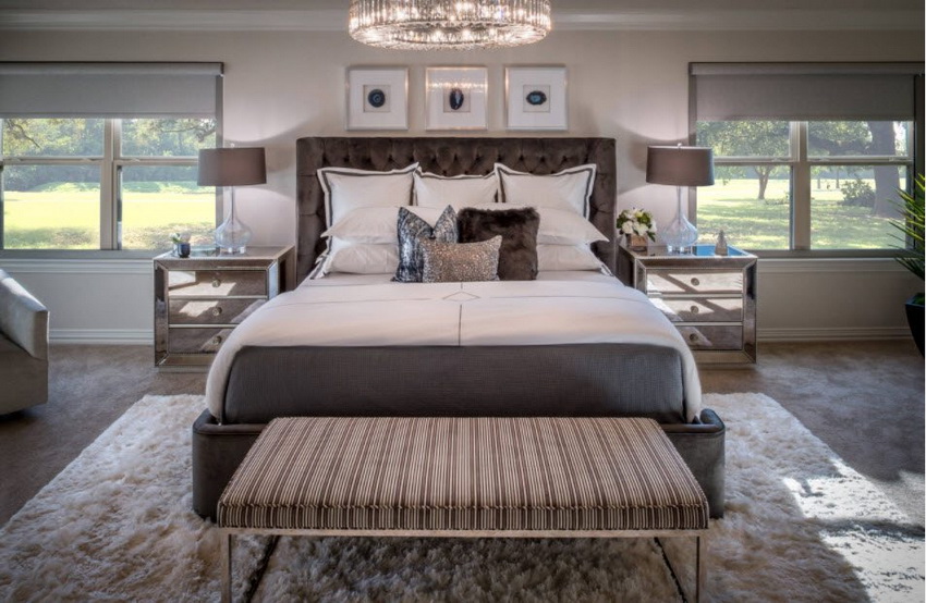 إذا بدت الغرفة غير شخصية للغاية ، يمكنك وضع سجادة صغيرة بنمط مرئي بوضوح بجوار السرير ، أو اختيار غطاء سرير بظل أكثر كثافة. يجب أن يتذكر أتباع الكلاسيكية الجديدة ، الذين يقترحون مجموعة غرفة نوم مصنوعة من أثاث ضخم بأرجل منحوتة وأنماط مزخرفة ، وستائر ثقيلة ، وأغطية المصابيح ، أن الغرفة التي من المفترض أن يتم وضع كل هذا فيها يجب أن يكون لها أسقف عالية وفتحات نوافذ كبيرة بما يكفي.