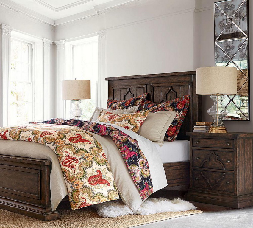 غالبًا ما يستخدم خشب الصنوبر والقيقب والزيزفون والكرز والبلوط كمواد خام. أغلى منتجات البلوط والكرز ، ولكن في نفس الوقت متينة ومرموقة. الصنوبر هو أكثر بأسعار معقولة من حيث السعر. تبدو مجموعات النوم الخشبية الصلبة دائمًا ، إن لم تكن ضخمة ، فهي صلبة. يجب أن يؤخذ ذلك في الاعتبار عند اختيار مجموعة كاملة ، بعد مقارنة أبعاد الأثاث مسبقًا بأبعاد غرفة النوم.