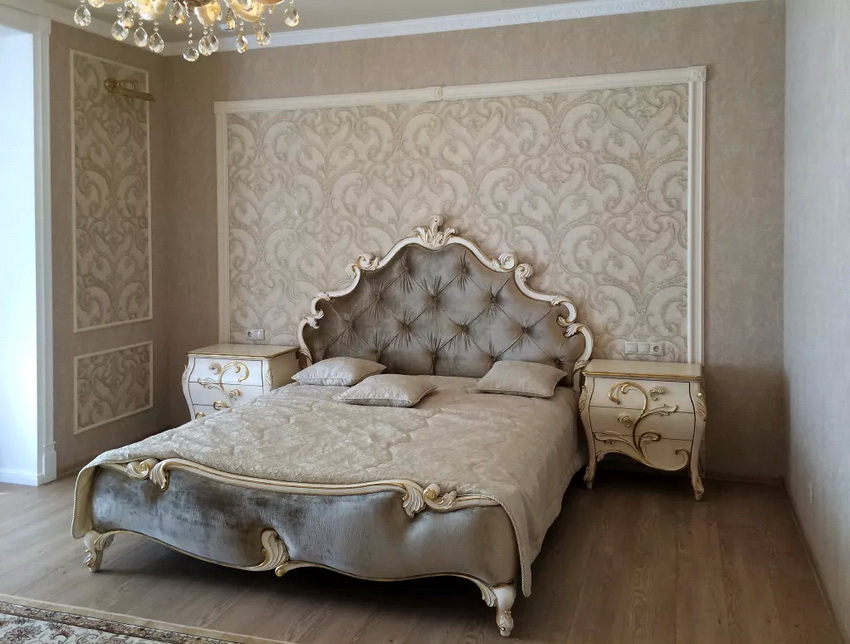 - كلاسيك. مستوى عال في كل شئ لا مزيف ولا تقليد. أثاث صلب مصنوع من الخشب عالي الجودة ، تشطيب - برونزي ، ذهبي.