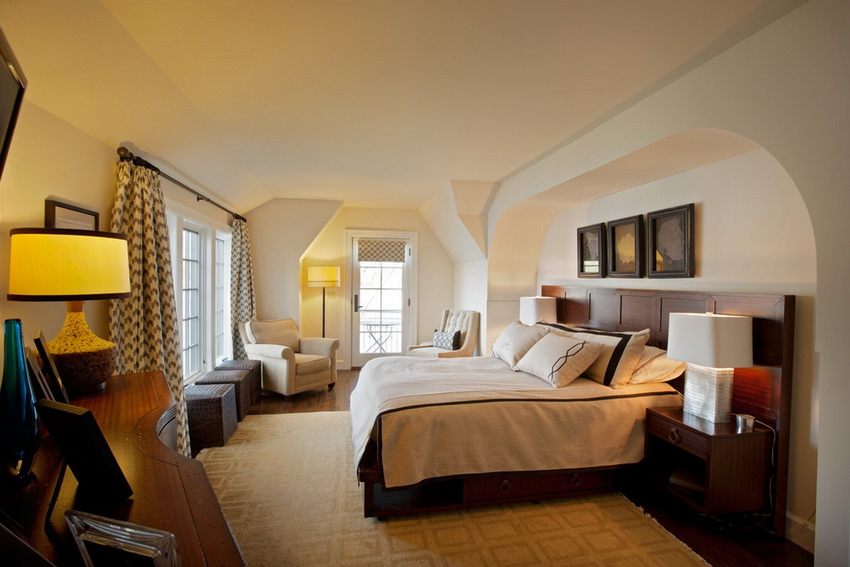 غرفة النوم هي مساحة للحرية الشخصية والخصوصية ، لذلك ، على الأقل ، يجب أن يلتزم التصميم الداخلي بالقواعد المعمول بها. ستساعدك خيارات أثاث غرفة النوم الموضحة في الصورة على تزيين الغرفة بطريقة مريحة ودافئة فيها.