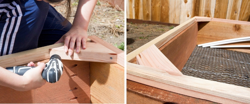 يمكن أن يكون صندوق الدفيئة مصنوعًا من الألواح أو الألواح المقواة بمسامير ذاتية التنصت أو قضبان التسليح