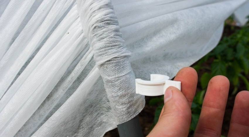 نصائح مفيدة! لضمان قوة التثبيت ، يمكنك استخدام مشابك بوليمر عريضة أو أقواس مجلفنة خاصة تساعد على تثبيت الأقواس بشكل آمن بالمؤسسة. يمكن استخدام نفس الطريقة لإرفاق الجملونات المسببة للاحتباس الحراري.