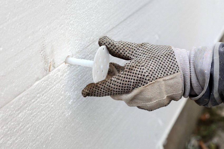 И накрая, изолационните плочи са механично фиксирани, за да се елиминира рискът от тяхното разслояване от повърхността. В размер на 5-6 крепежни елементи на лист, те се закрепват с помощта на дискови дюбели.