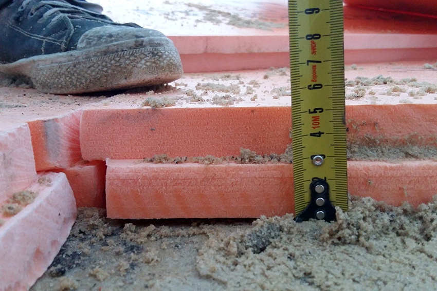 - пясък се излива под дъното на изолацията, както и отстрани на нея;