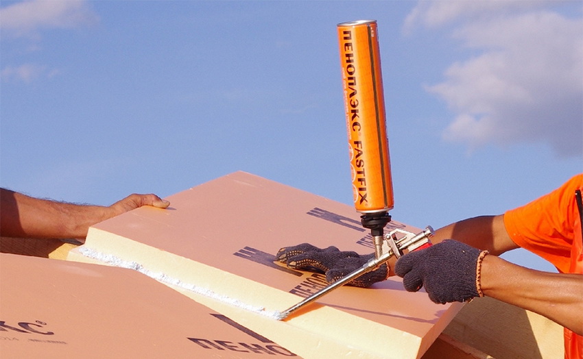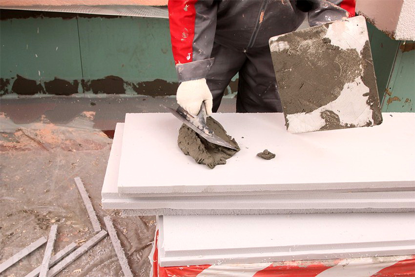 Технологията на фасадната изолация с пеноплекс предвижда елементите да се закрепват със специална лепилна смес. Приготвя се в съответствие с инструкциите, приложени към него. Важно е да използвате готовото количество разтвор в рамките на 1,5 часа, ако околната температура не е твърде висока. При горещо време този период се намалява до 40-60 минути.