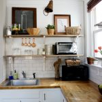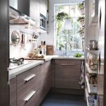 Друг популярен вариант е 6 кв. м. Оборудван е със стенни шкафове или ъглови рафтове. Смята се, че ъглова кухня за малка кухня от 6 м е по-малко удобен вариант от първия, но по този начин могат да се поставят повече мебели.