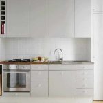 Най-доброто решение на проблема с липсата на свободно пространство е използването на мебели за вградени уреди. Такива кухненски комплекти Можете да го намерите в продажба или да поръчате индивидуално производство, след като направите точни измервания. Също така е важно да помислите как ще се отворят чекмеджетата и вратите.