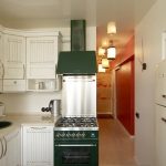 Важно! Малкият размер на кухнята изобщо не е причина да се откаже пълна комуникация. Например трябва да се погрижите за наличието на комин над печката, в противен случай съществува риск той да бъде много опушен и горещ в толкова малка стая по време на готвене.