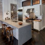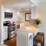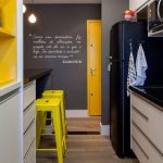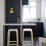 Друго чудесно решение за обновяване на 6-метрова кухня е инсталирането на бар плот вместо традиционния кухненска маса... Това решение ви позволява да оптимизирате използването на пространството и в същото време да имате повърхността, необходима за ежедневно хранене.