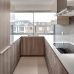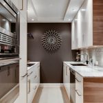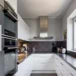 Друг интересен вариант за настаняване мебели в малка кухня - двуредово оформление. В този случай мебелите са разположени по протежение на противоположните стени, като най-често ги разделят по предназначение: от една страна, те заемат повърхностите за готвене, а от друга, са зоните за хранене и отдих.