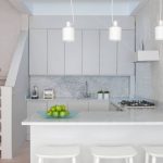 Осветлението е много важен елемент от дизайна на 6-метровата кухня и до голяма степен определя как ще се възприема пространството. Освен това с помощта на светлината можете зонално пространство, като по този начин отделя зоната за готвене от зоната за хранене. Като се има предвид, че на толкова малка площ има много шкафове, повърхности и чекмеджета, всичко това може да доведе до факта, че ще бъде възприето като бъркотия. И само правилното кухненско осветление ще въведе ред в този хаос.