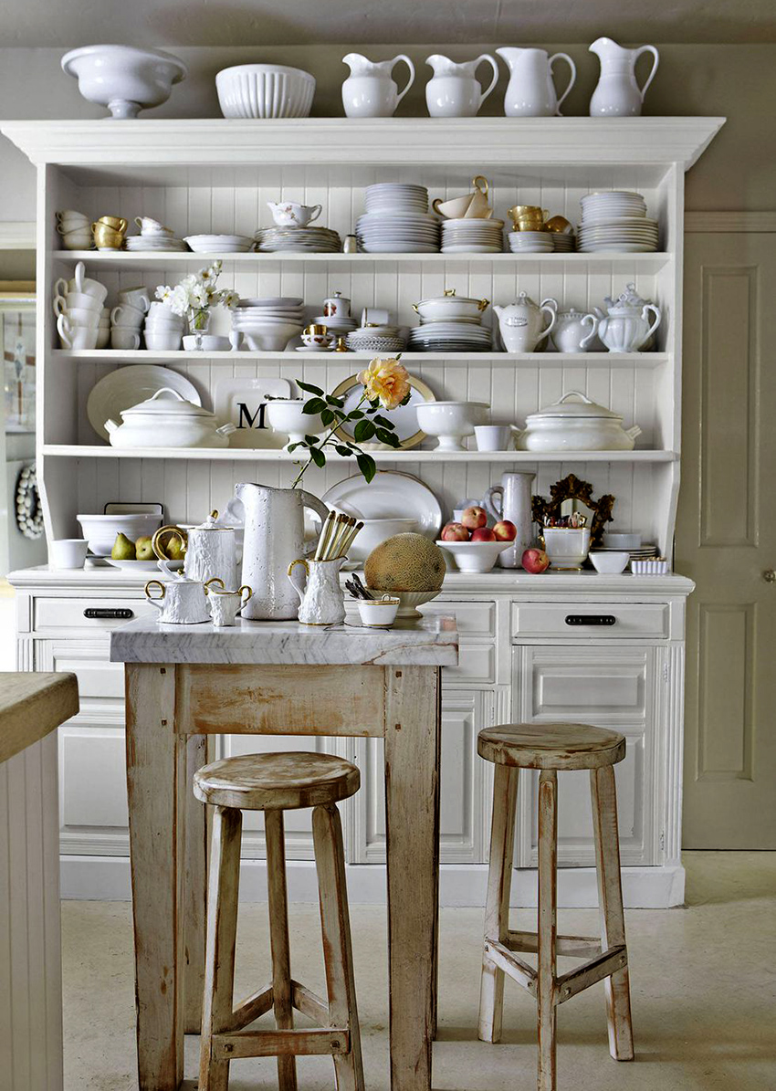 Важно е да запомните, че тези продукти са предимно декоративни елементи на мебели, тъй като всички предмети, поставени върху тях, са на видно място. Поради това те не са подходящи за съхранение на еднообразни ястия. Препоръчително е да съхранявате обикновени чинии в отделенията на кухненския комплект.