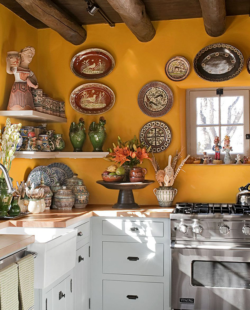 Рафтовете могат да бъдат поставени не само до шкафове или в ъгъл, но и например над врата или близо до прозорец. За украса на кухнята се използват шарнирни, окачени, монтирани на стената и други опции за рафтове.