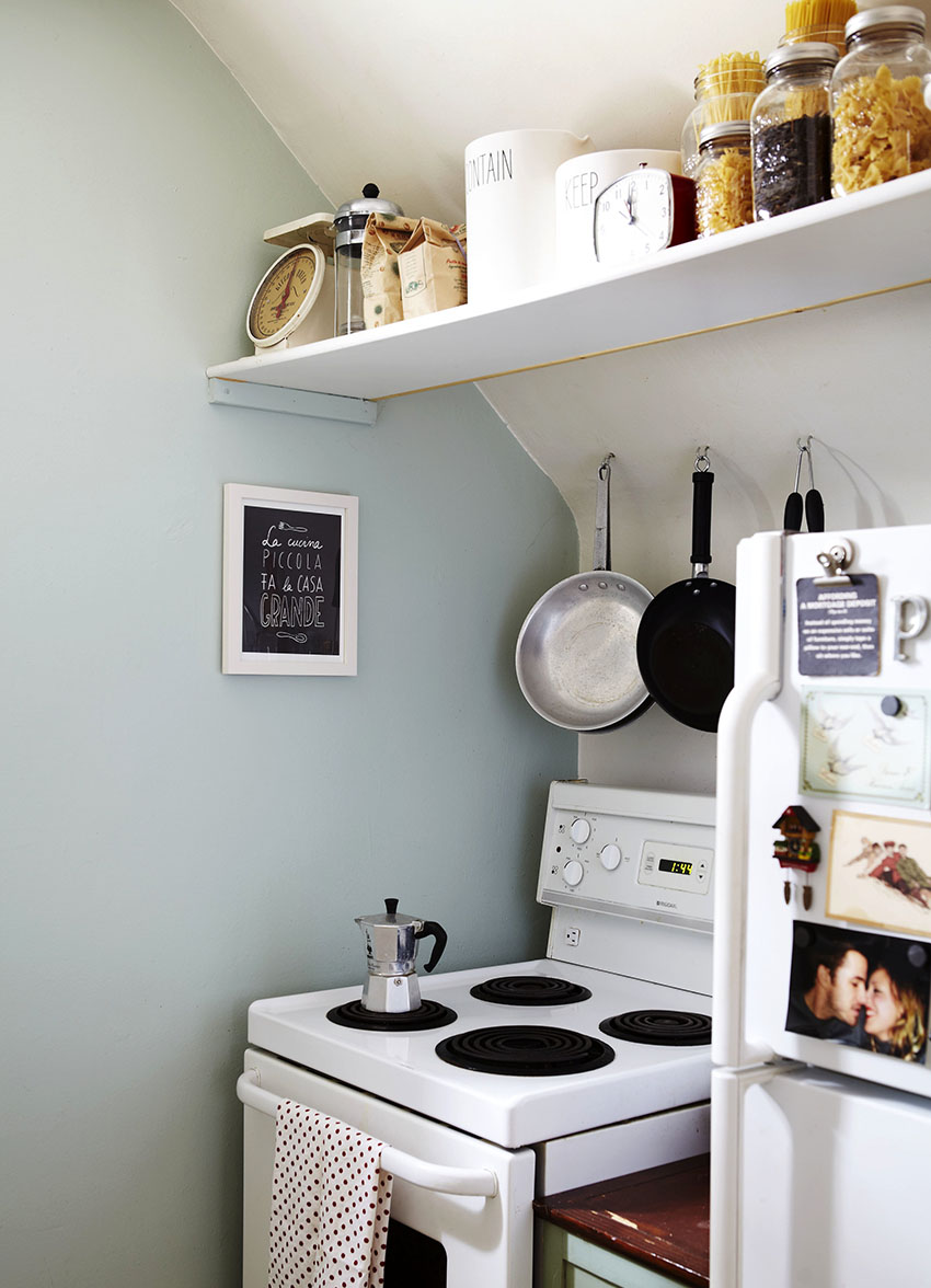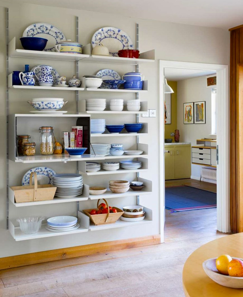 Местоположението на рафтовете се избира в зависимост от размера на кухнята и количеството на останалите мебели