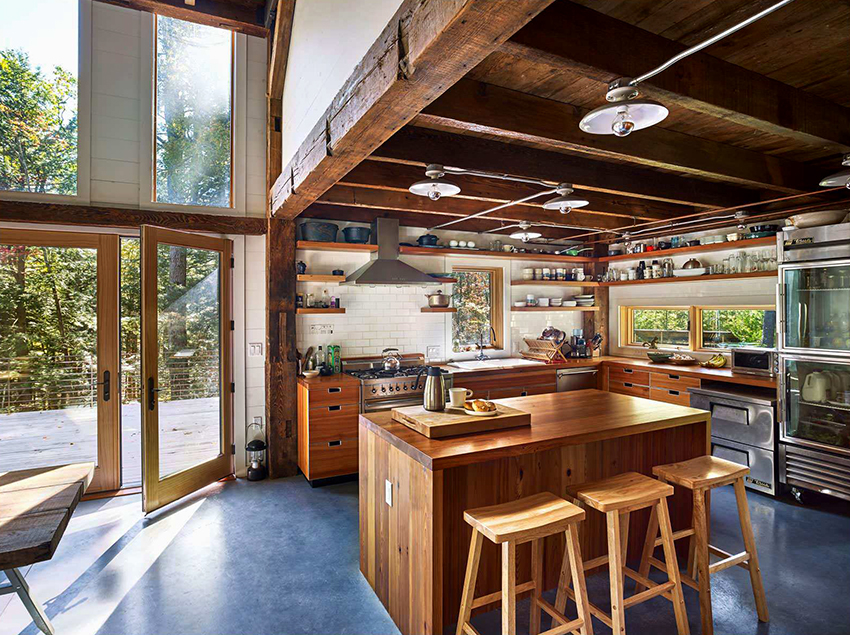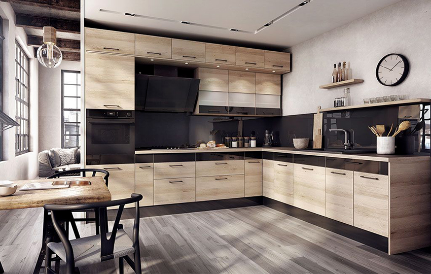 Дърво. За кухня, декорирана в класически стил, тази опция е най-подходяща. А също така дървените модели изглеждат страхотно по стените на стаи, направени в селски стил. Кухнята с отворени рафтове от естествено дърво изглежда просто и уютно.