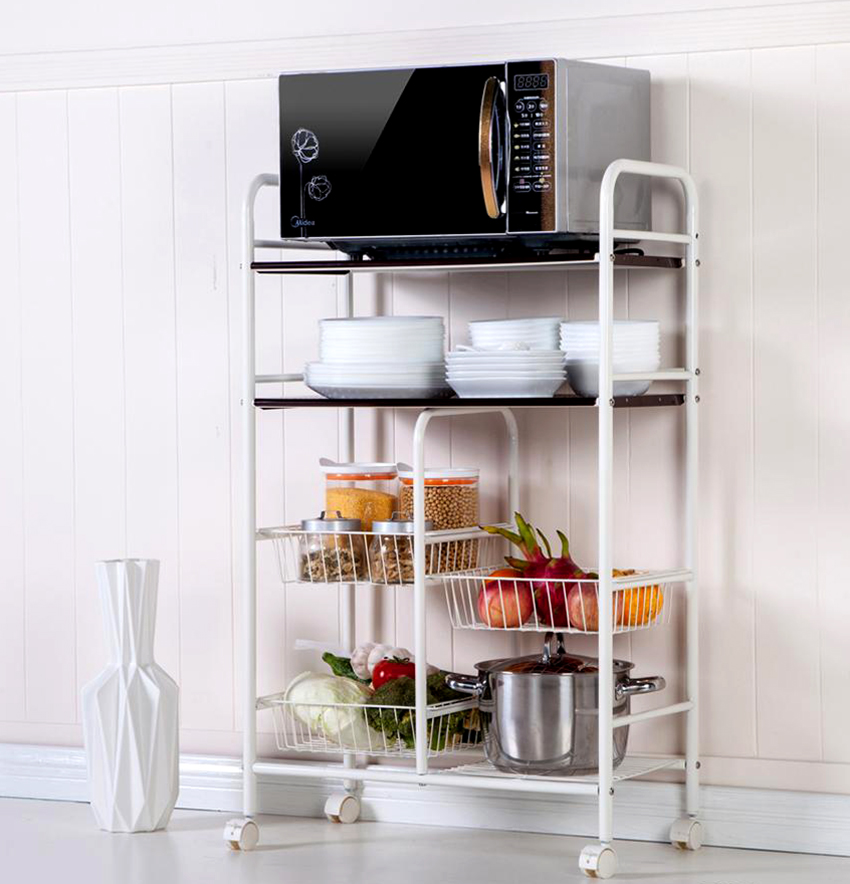 Забележка! Многоетажните конструкции са най-подходящи за съхранение на малки предмети. Препоръчително е да поставите по-големи кухненски прибори на едноетажни рафтове.