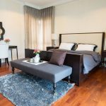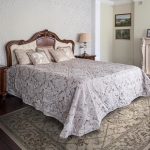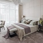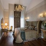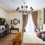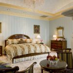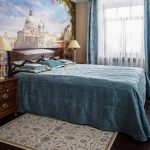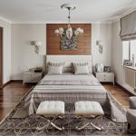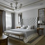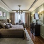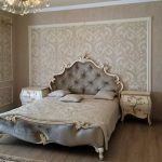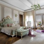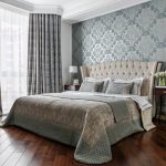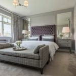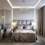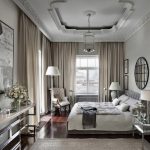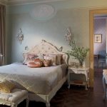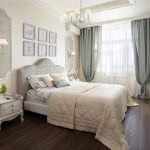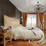 Ако стаята изглежда твърде безлична, можете да поставите малък килим с ясно видим модел до леглото или да изберете покривало с по-интензивен нюанс. Привържениците на неокласицизма, включващи спален комплект, изработен от масивни мебели с издълбани крака и богато украсени шарки, тежки завеси, абажури, трябва да помнят, че помещението, където трябва да се постави всичко това, трябва да има високи тавани и достатъчно големи отвори за прозорци.