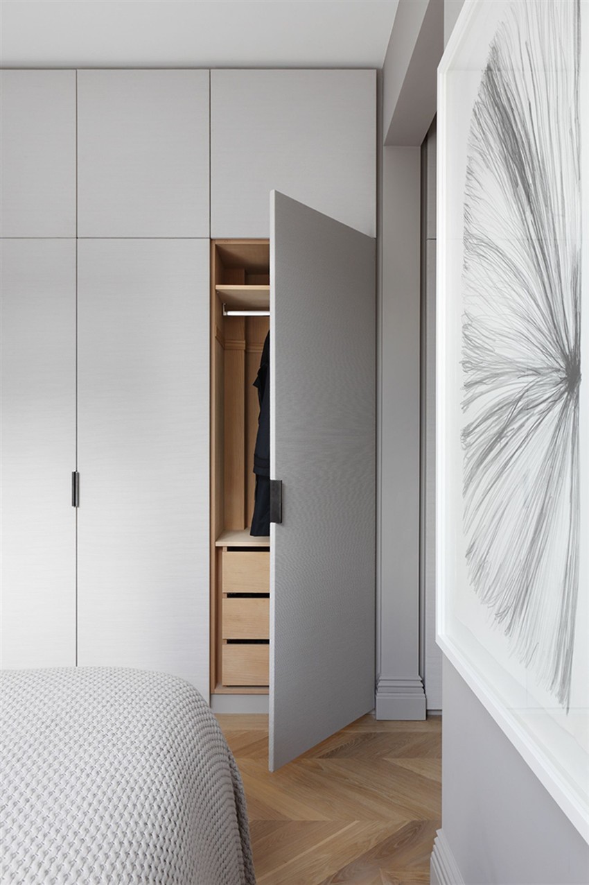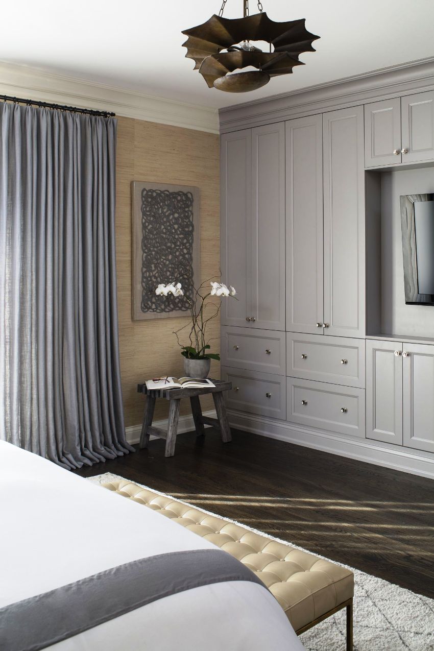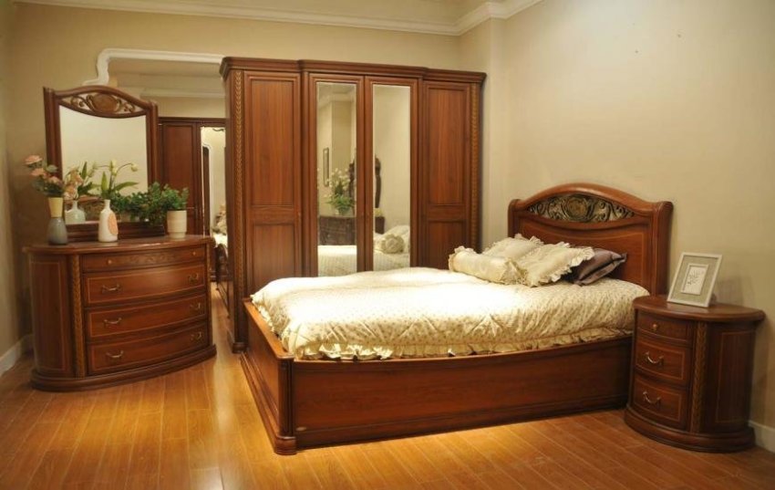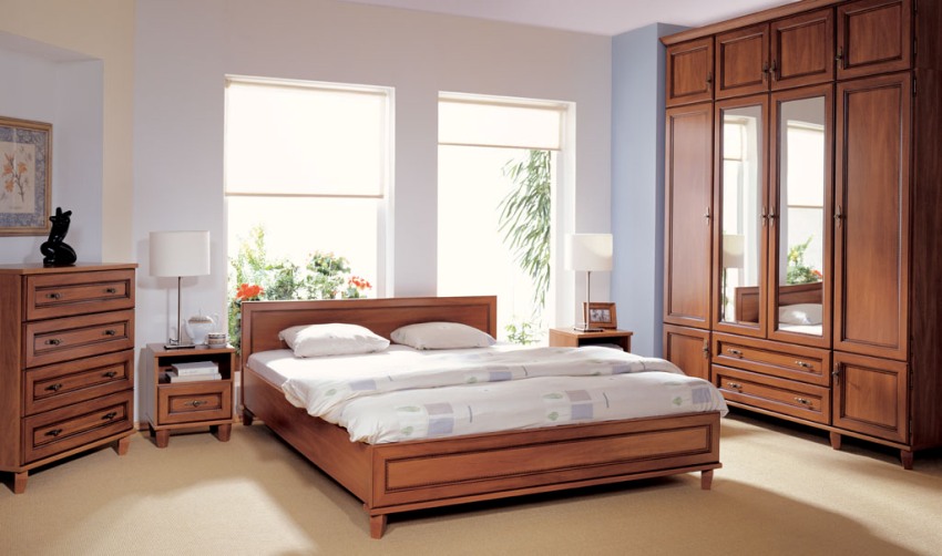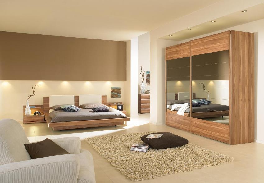 В условията на повечето апартаменти е трудно да се избере стая, която да играе ролята само на спалня, така че е малко вероятно да бъде възможно да се ограничите до инсталирането на едно легло. Често спалнята е едновременно място за спане и съхранение на неща. Ако е по-добре да оставите горното облекло в коридора, тогава се препоръчва да държите ежедневните малки неща и спално бельо в спалнята. Стената в спалнята е избрана не само за осигуряване на удобно съхранение на дрехи, но и за хармонично допълване на интериора.