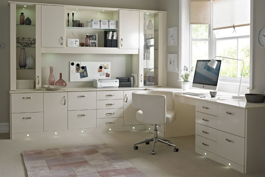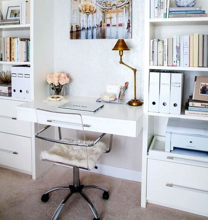 Полезен съвет! Когато оборудвате работно място, трябва да помислите за наличието на ортопедичен стол, който по стил трябва да се комбинира с повърхностите на шкафа.