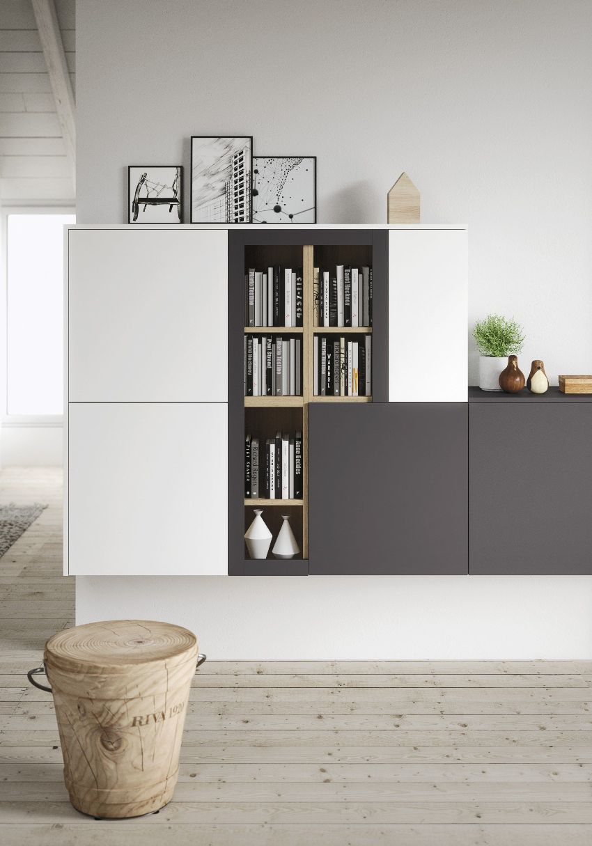 Интересно е! По принцип стените се състоят от няколко секции, всяка със специфична функция. В зависимост от предназначението продуктите се допълват с отворени рафтове, плъзгащи се врати или огледални повърхности.