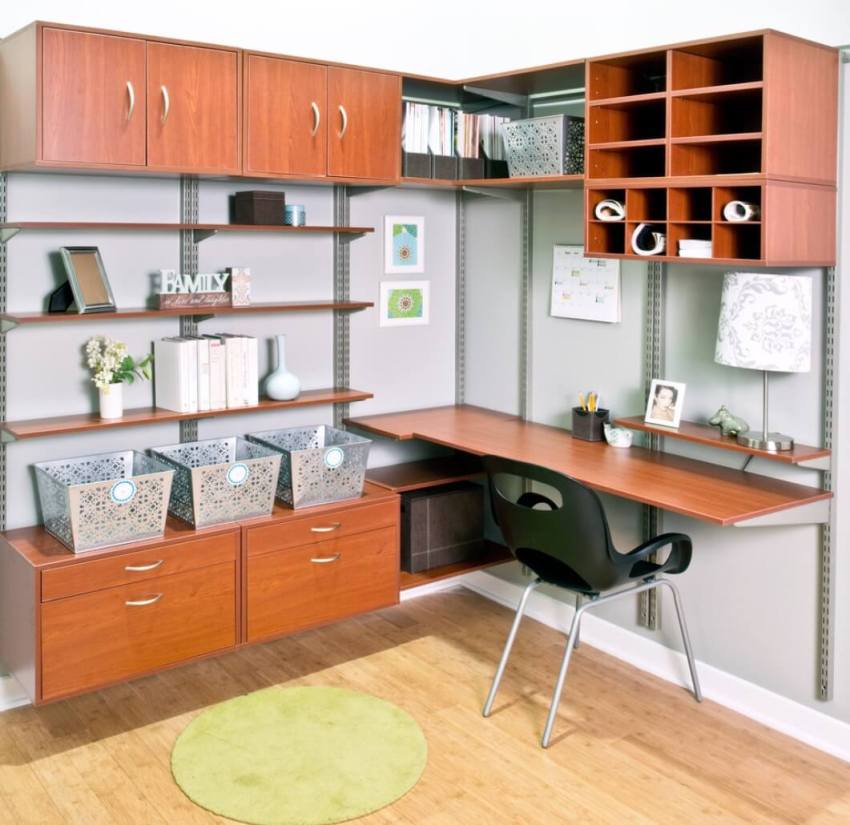 - рационална и проста организация на пространството. Благодарение на малкото рафтове на мини ъгловата стена ще бъде по-лесно и бързо да намерите предметите, от които се нуждаете.
