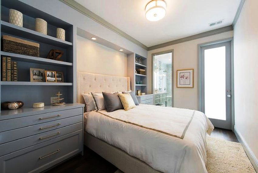 - подреждането на елементи с различна височина създава впечатлението за свободно пространство, което е особено важно в малка спалня;