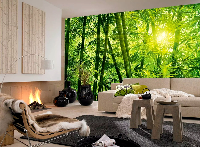 - образът на природните ландшафти на гори, планини, степи, ливади и дори пустини все по-често се избира от жителите на „каменната джунгла“, за да се доближат максимално до природата в просторни зали и спални;