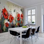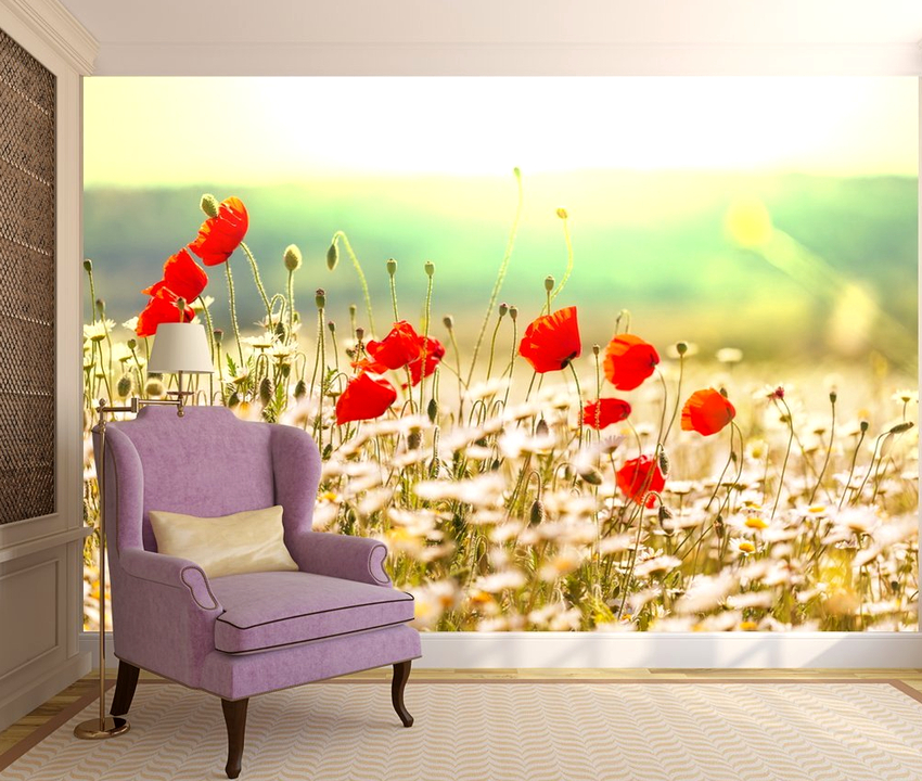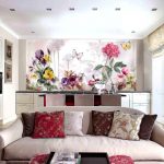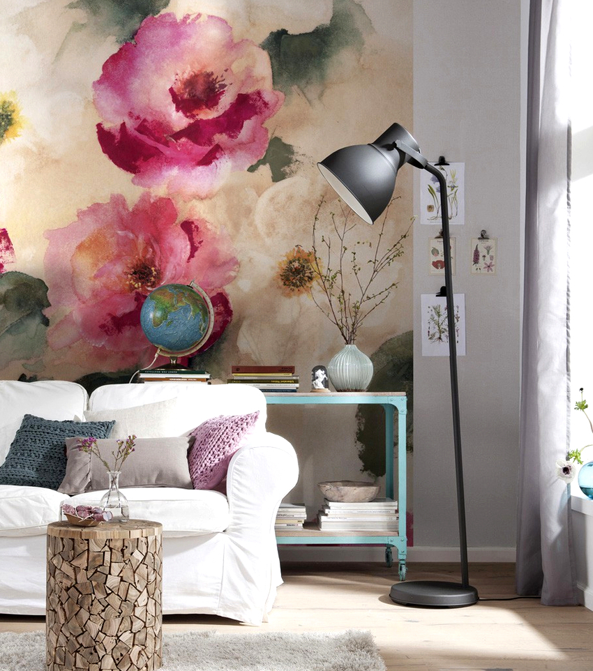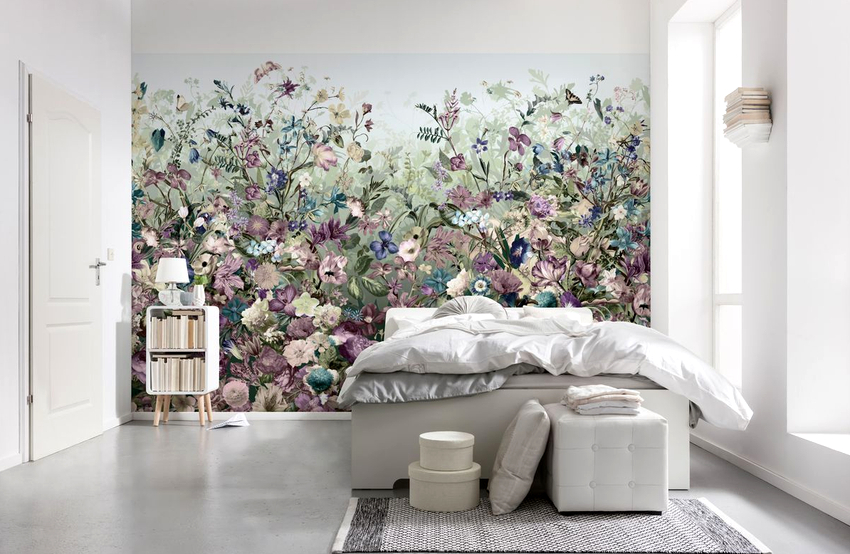 Всеки стил може да бъде съчетан със своя специален флорален принт. Така че, пастелните цветове ще се харесат на романтичните натури, а завладяващите и ярки образи ще се харесат на изразителни и творчески личности. Цветята са подходящи и за етностил, например клони от цъфтяща сакура ще подчертаят благоприятно японския стил. Дивите цветя като метлички, макове, глухарчета или маргаритки ще добавят глътка свежест към интериора на фона на зелена трева. Стенописи, изобразяващи лалета, люляци, лилии и ириси, ще създадат лекота и пролетно настроение.