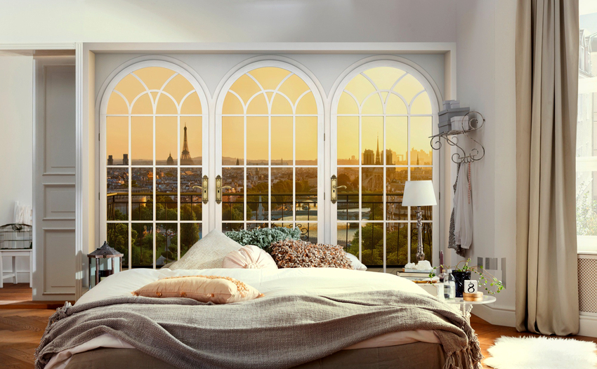 - подчертайте определена част от стаята, фототапети с модел на врати или прозорци ще ви помогнат да направите това;